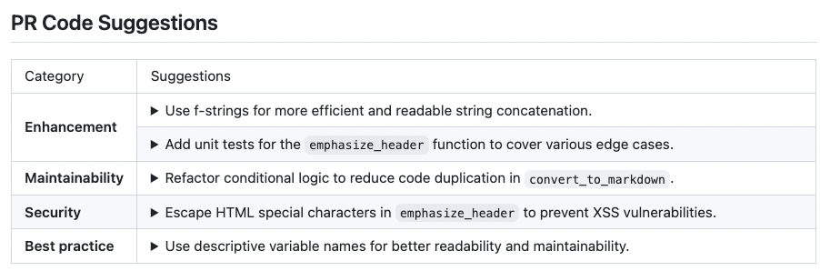 - Provides actionable code suggestions with explanations